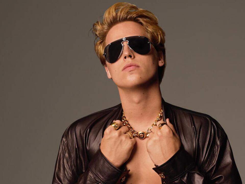 L’attore, modello e fotografo statunitense è protagonista della campagna per la nuova collezione eyewear maschile della griffe della Medusa, in licenza a Luxottica