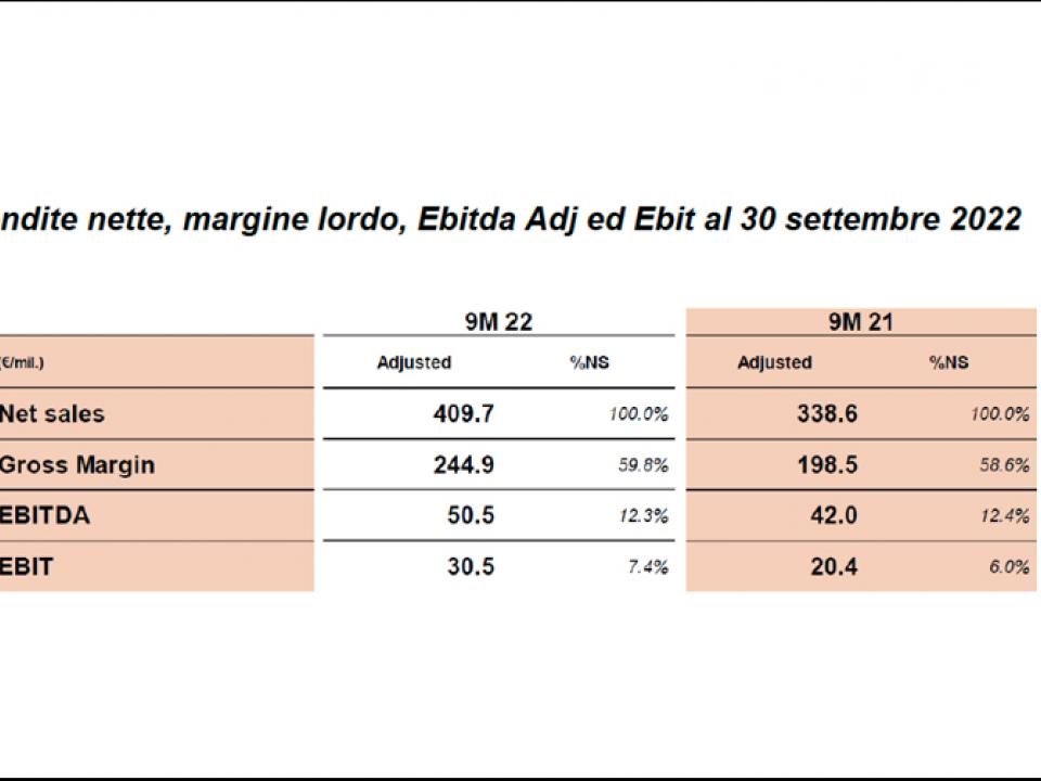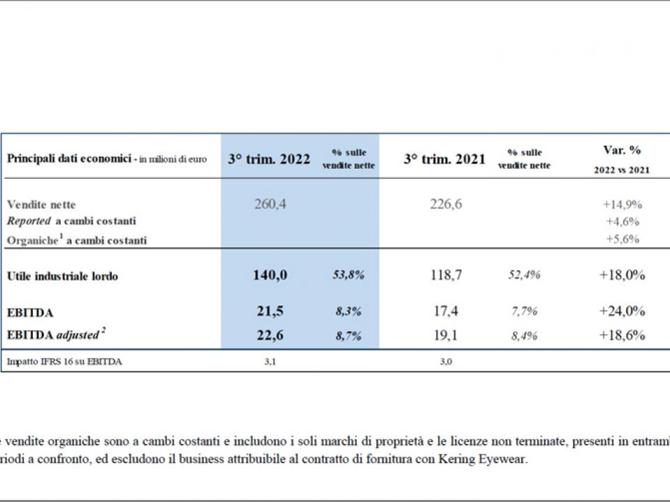 Crescita a due cifre sia per il fatturato sia per la marginalità del gruppo di eyewear (nella tabella principale) tra luglio e settembre 2022, che ha sostenuto il trend positivo nei primi nove mesi dell’anno