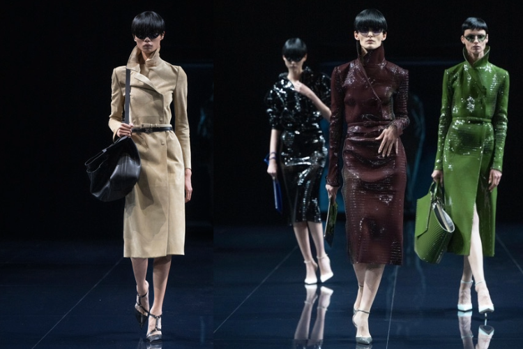 Così come gli accessori. In primo piano gli occhiali. In prevalenza neri, ampi, anche a maschera. Così da Saint Laurent e soprattutto da Loewe (nella foto sopra), presenti in quasi tutte le uscite. Numerosi anche sulla passerella di Tom Ford (nella foto principale), dove Haider Ackermann li ha proposti di svariati modelli, dai neri grandi o cat-eye ai metallici con lenti leggermente colorate in accordo con gli spolverini e i blazer dress. Sottili dalla linea allungata gli occhiali nella sfilata di Valentino, tra trasparenze e opacità. Enormi, neri e futuribili da Balenciaga. Da vista e metallici da Louis Vuitton e da Stella McCartney, piccoli e squadrati i primi, ampi modello aviator i secondi.