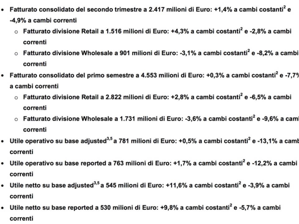Le nuove politiche distributive e il ritardo nella partenza della stagione sole avrebbero frenato le vendite sui mercati continentali nel primo semestre 2018, mentre il resto del mondo, almeno a cambi costanti, ha fatto segnare performance positive nei ricavi. Inoltre il margine netto adjusted a cambi costanti è aumentato di 130 punti base rispetto allo stesso periodo del 2017 al livello record del 12,8%