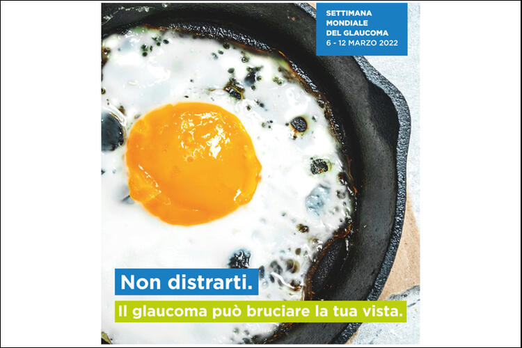 Ha preso il via la campagna “Non distrarti. Il glaucoma può bruciare la tua vista” (nella foto, la locandina) per la settimana mondiale 2022 focalizzata sulla malattia: a richiamare il messaggio, l’immagine di un uovo al tegamino bruciacchiato ai bordi perché lo si è messo sul fuoco, ma ci si è dimenticati di controllarne la cottura, che rappresenta simbolicamente gli effetti della patologia sull’occhio. «Tuorlo e albume rievocano facilmente pupilla e iride e le bruciature che appaiono sui bordi dell’uovo, quando cuoce a temperatura troppo alta e troppo a lungo, evocano invece la progressione del glaucoma, che “brucia” gradualmente la vista periferica senza che la persona se ne accorga», spiega in una nota della onlus lo chef Alessandro Circiello, che ha prestato il proprio volto al video per la campagna il cui claim, “Non distrarti. Il glaucoma può bruciare la tua vista” sottolinea come in entrambi i casi ciò accada perché ci si è dimenticati di controllare o per sottovalutazione.