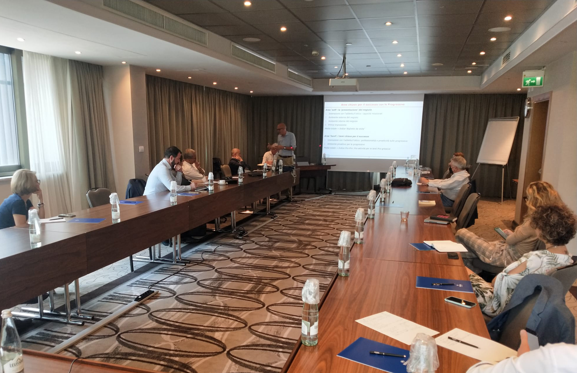 Tutto questo può derivare da una non adeguata preparazione nei confronti di tali soluzioni oftalmiche: da qui la decisione di lanciare una masterclass, non soltanto per chi conta già su un livello formativo adeguato, ma anche per coloro che hanno nozioni base e vogliono migliorarsi, illustrata da Silvano Abati e Giancarlo Montani, che fanno parte del comitato tecnico scientifico del Progressive Business Forum. Perché l’obiettivo condiviso da tutti i presenti all’incontro di Milano è la necessità di proseguire sulla positiva strada intrapresa (+2% di penetrazione in Italia dal 2019 a oggi), consapevoli che l’incremento delle progressive all’interno di un centro ottico significa non solo un aumento di fatturato, ma anche di marginalità. «Il Progressive Business Forum è un laboratorio aperto tutto l’anno: vogliamo perciò condividere i risultati raggiunti e i progetti in corso, come quello del cliente misterioso, che avrà una durata triennale, e confrontarli con i vostri – ha detto Ferdinando Fabiano alla platea delle aziende oftalmiche (nella foto) – Solo dialogando e confrontandosi si può crescere e far crescere l’intera filiera: siamo infatti di fronte a un movimento circolare, dove al centro c’è l’ottico che si interfaccia con l’industria e la classe medica sul tema della presbiopia e di come risolverla al meglio in base alle esigenze del consumatore finale».